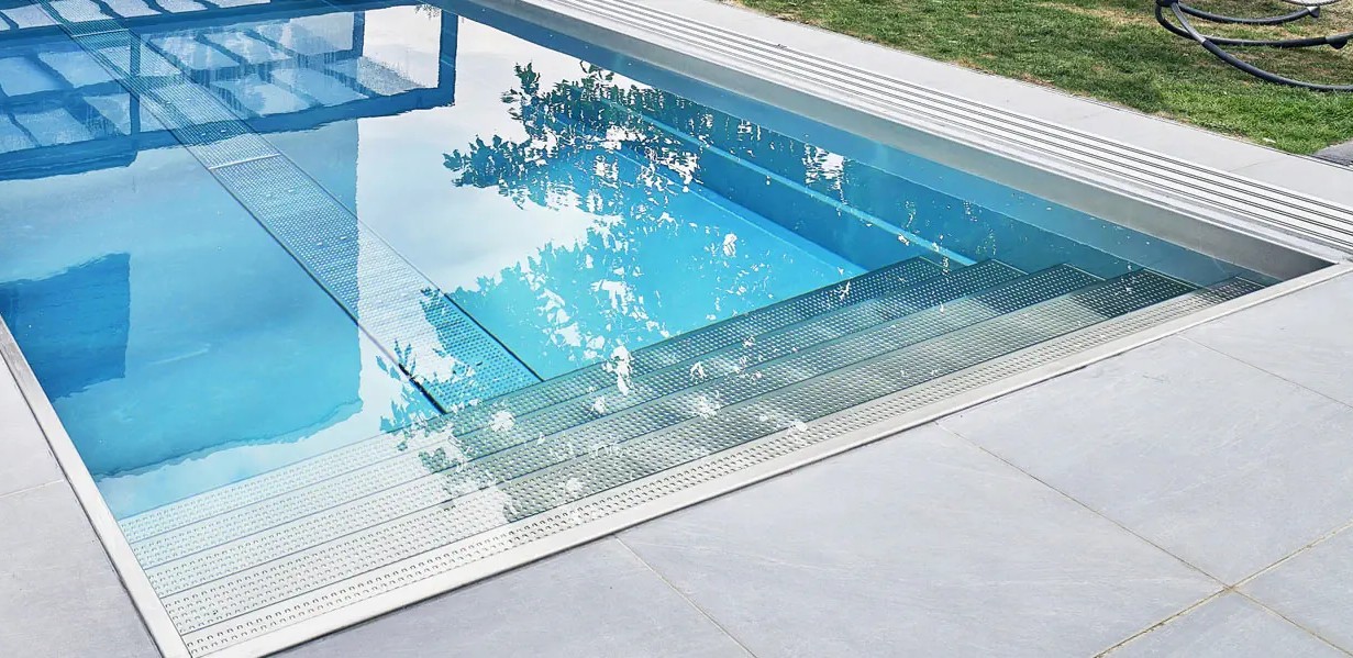 Oblíbený pro privátní zahrady – ideální volba pro luxusní nerezový bazén s minimem provozních starostí.